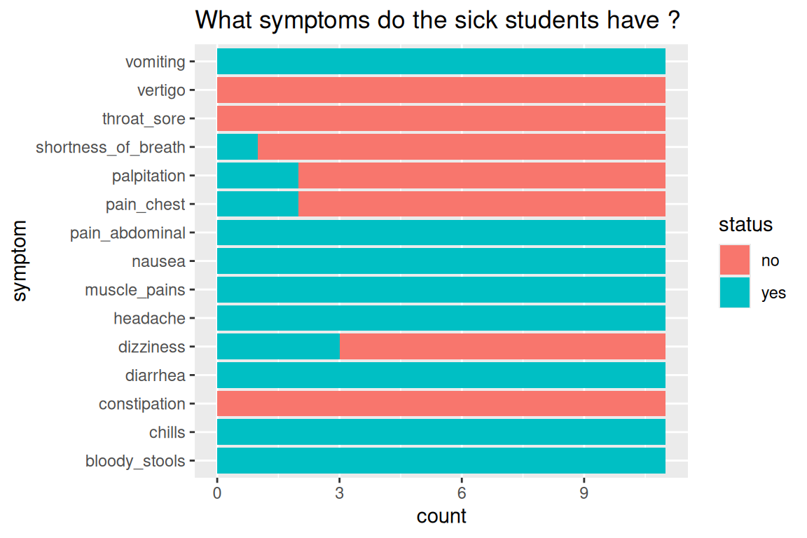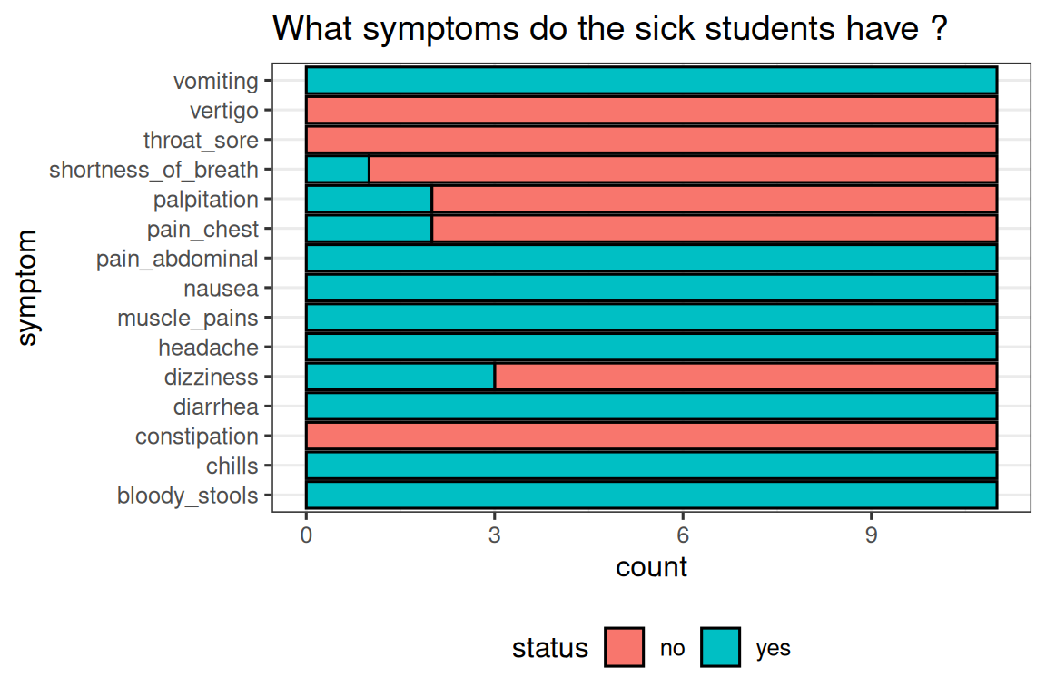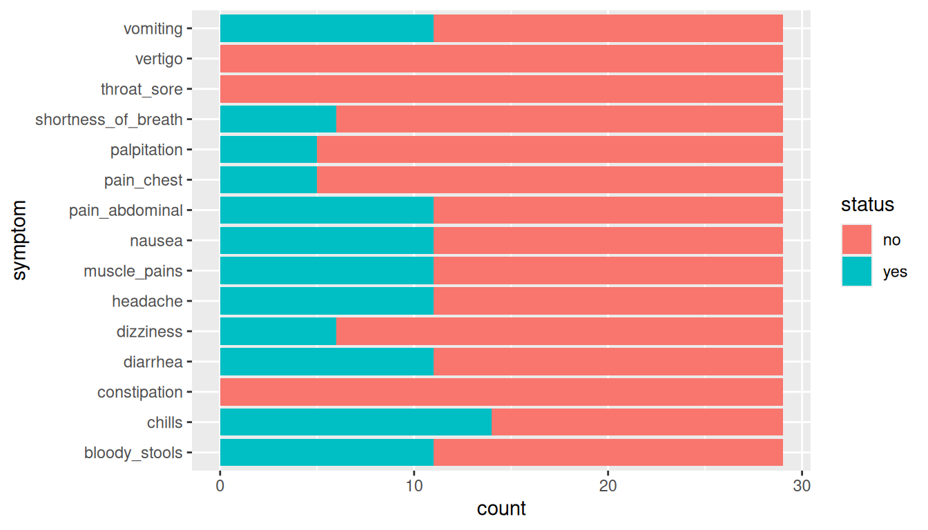 For the next few plots we are going to use symptoms and not outbreak_data, however they record exactly the same thing.