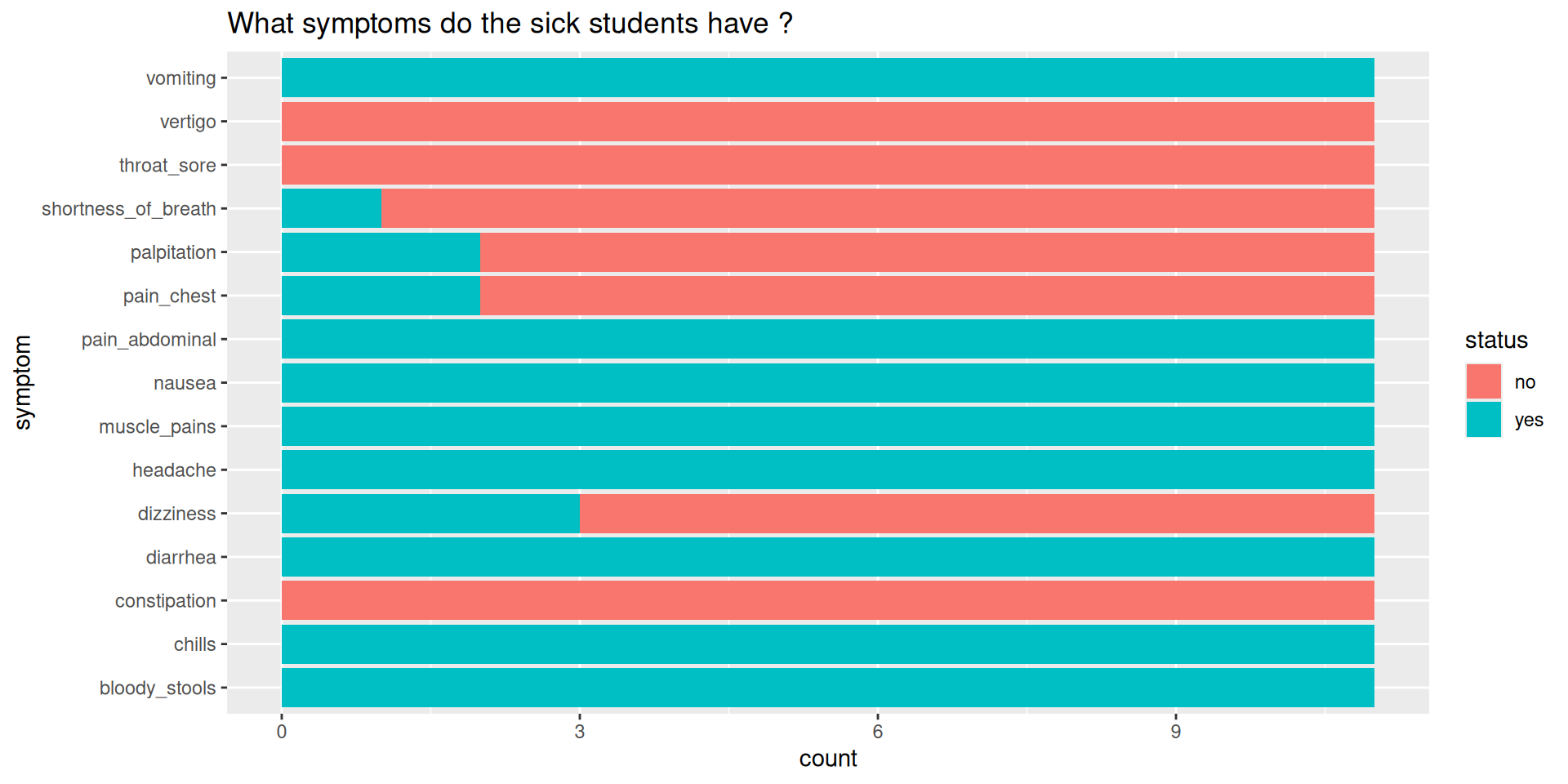 This doesnāt necessarily help us to decide what is making the students sick because they are not separated as to whether they were sick or not